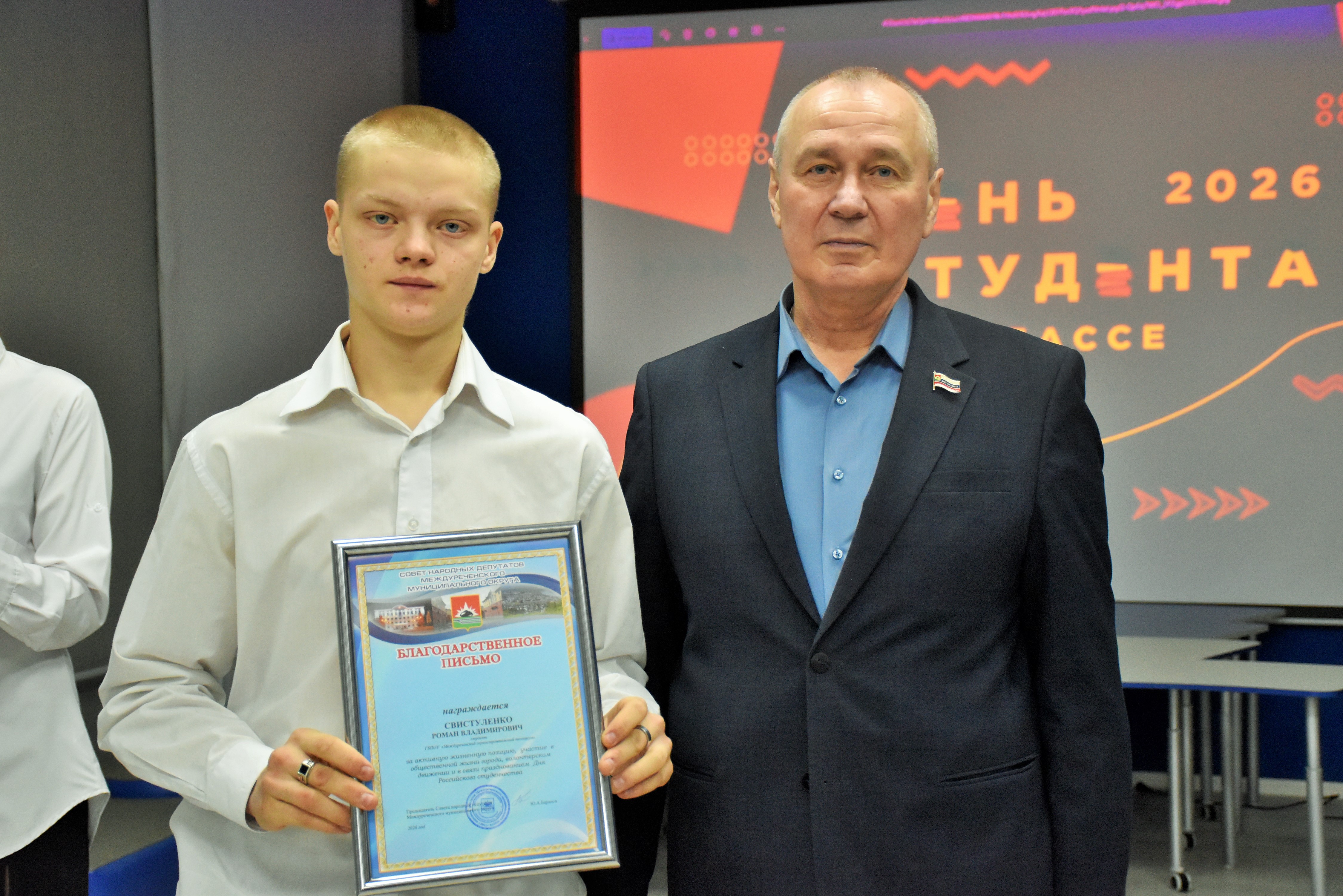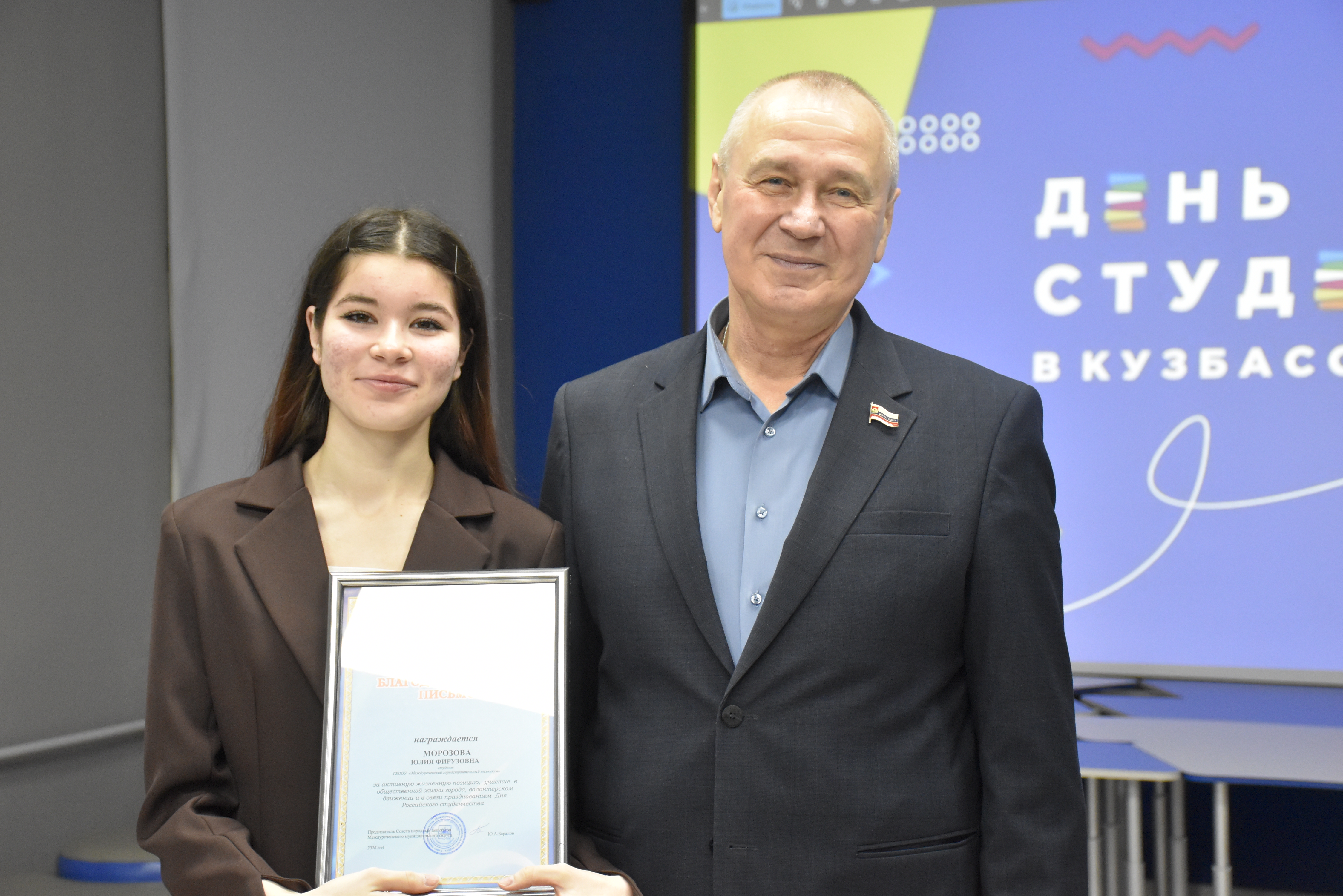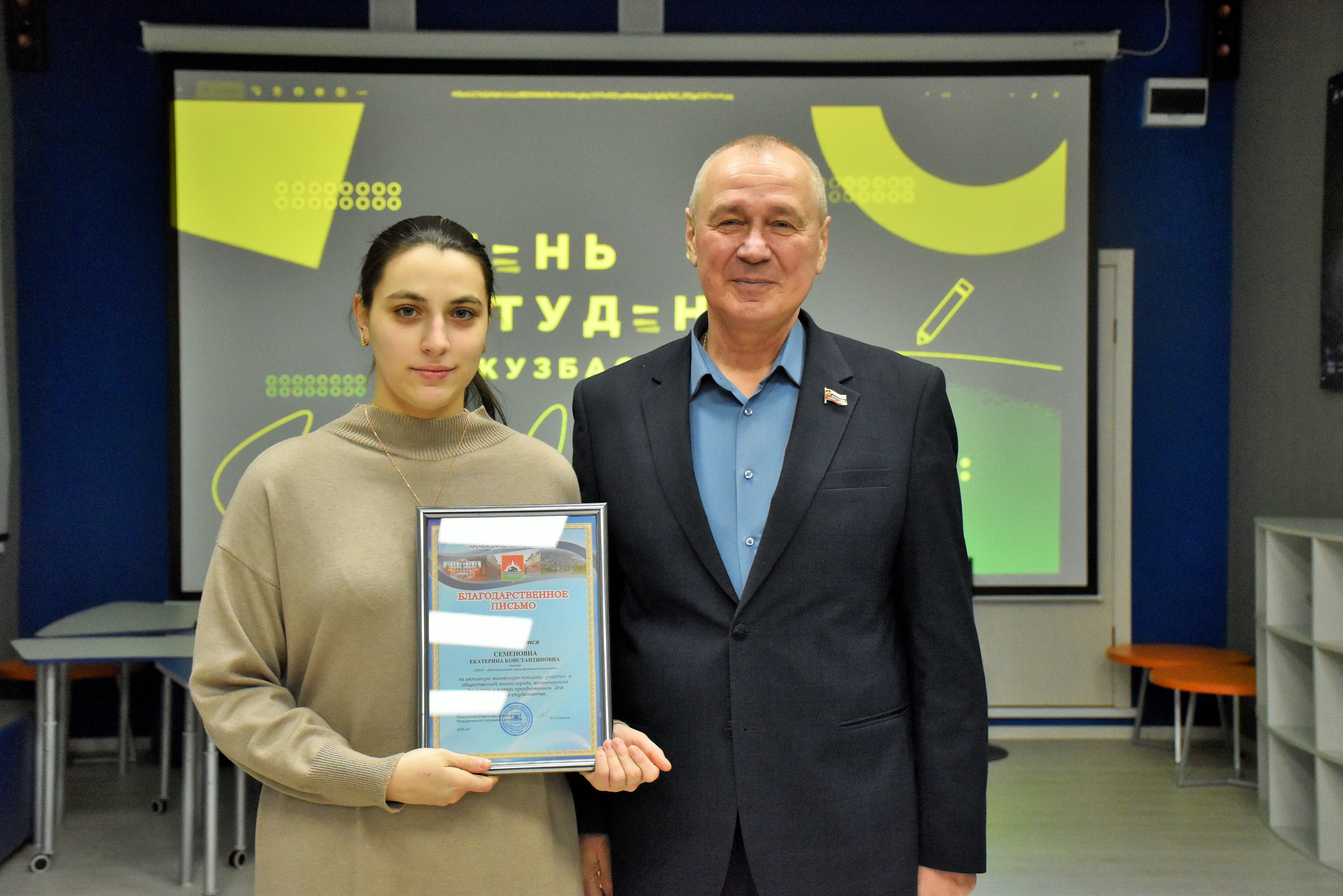 Особо отличившимся студентам были вручены благодарственные письма Совета народных депутатов за активную жизненную позицию, участие в общественной жизни города и волонтерской деятельности.